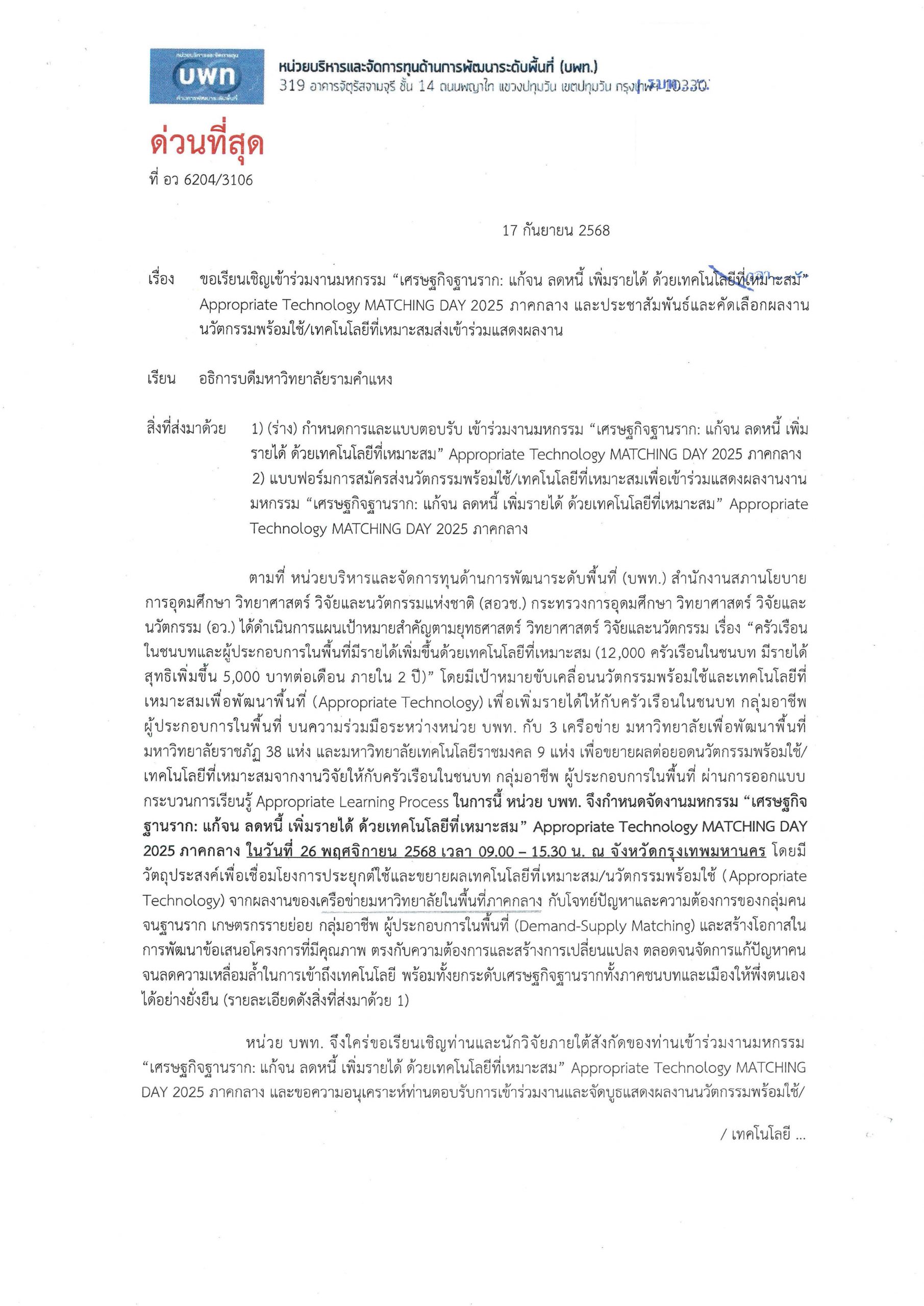 NRCT NRMS ขอเชิญเข้ารับการอบรมเชิงปฏิบัติการ “การใช้ระบบบริหารจัดการงานวิจัยแห่งชาติ (ระบบ NRMS) ประจำ ๒๕๖๐ ช่วงที่ ๒ (พฤษภาคม – กันยายน ๒๕๖๐) เม.ย. 19, 2017 สถาบันวิจัยและพัฒนา มหาวิทยาลัยรามคำแหง ตามที่ สำนักงานคณะกร…