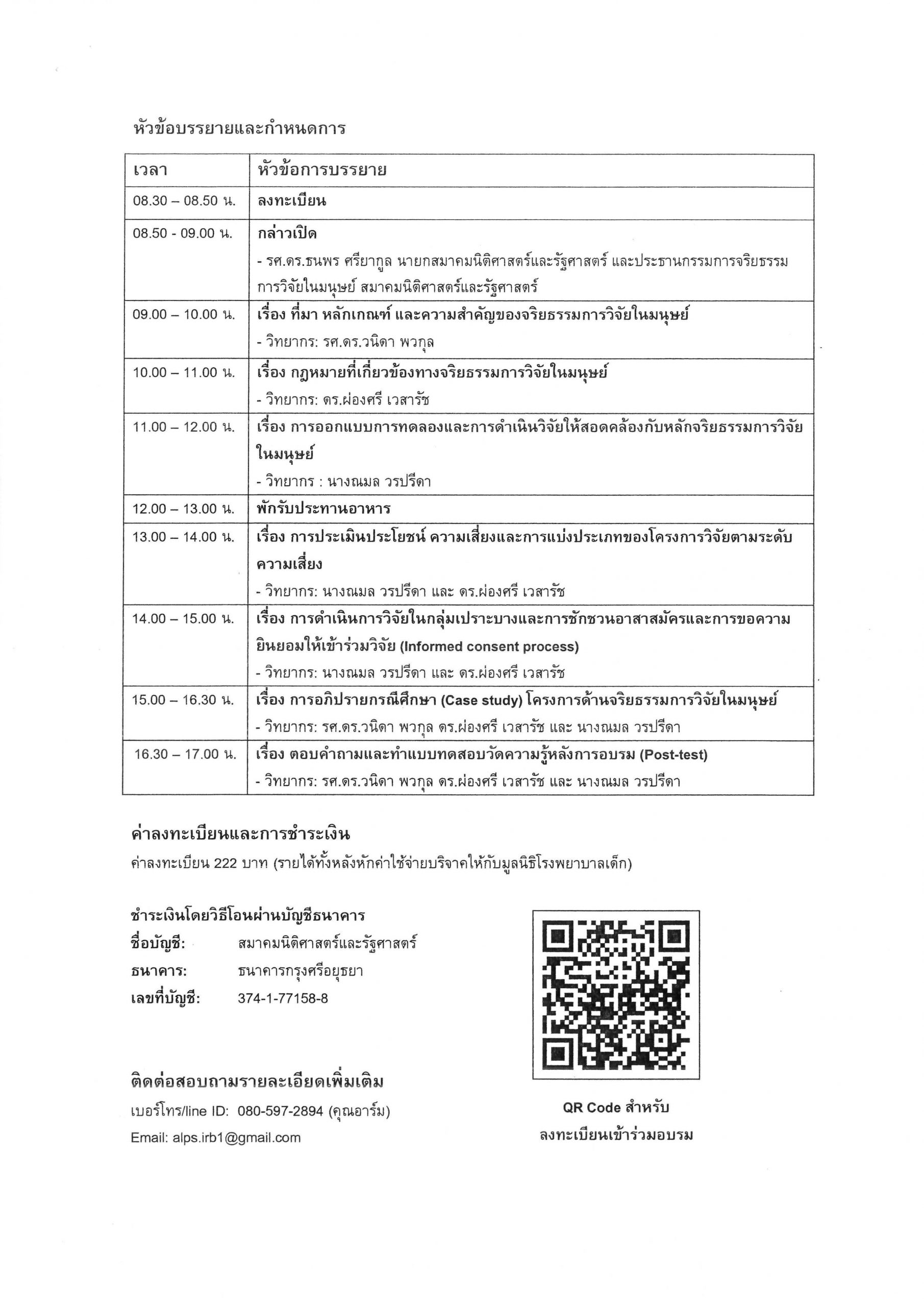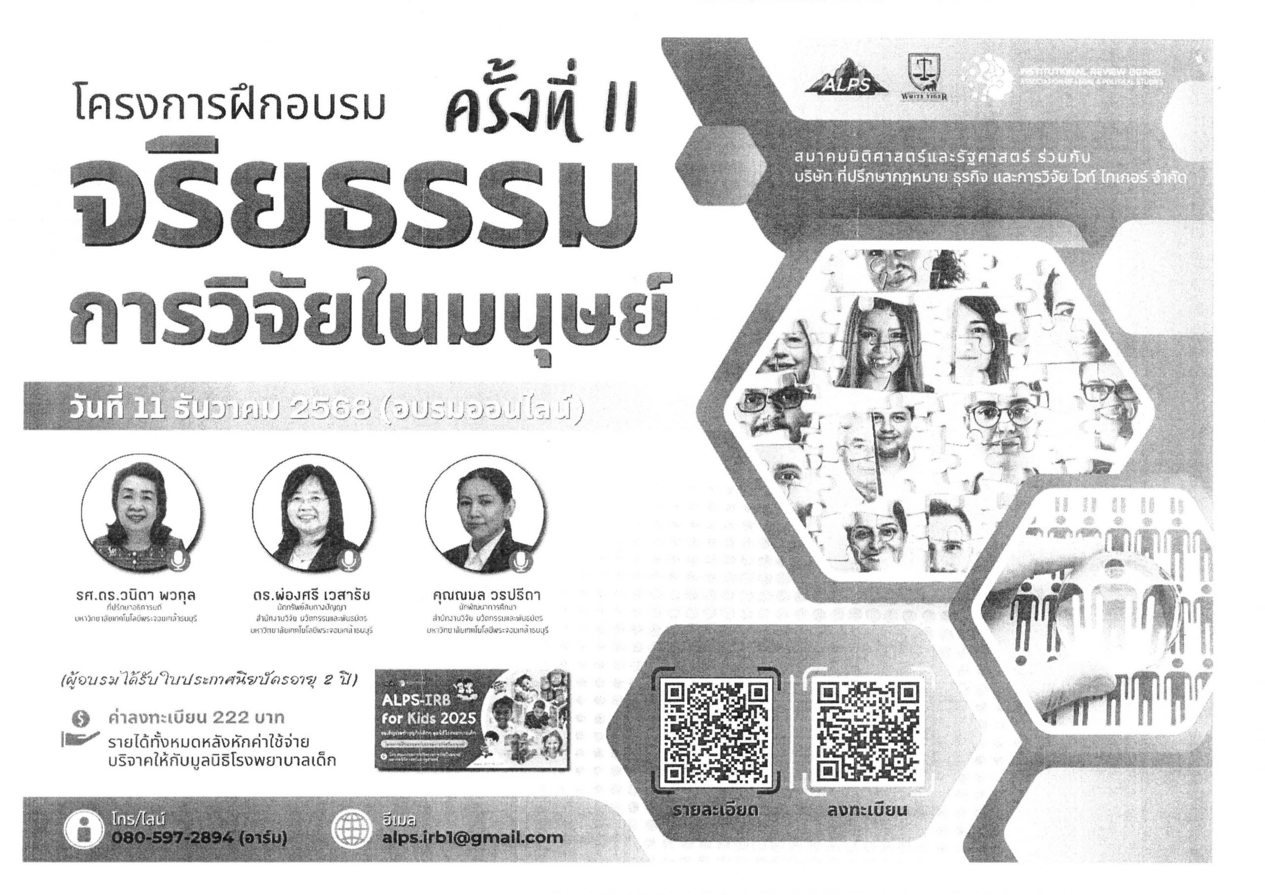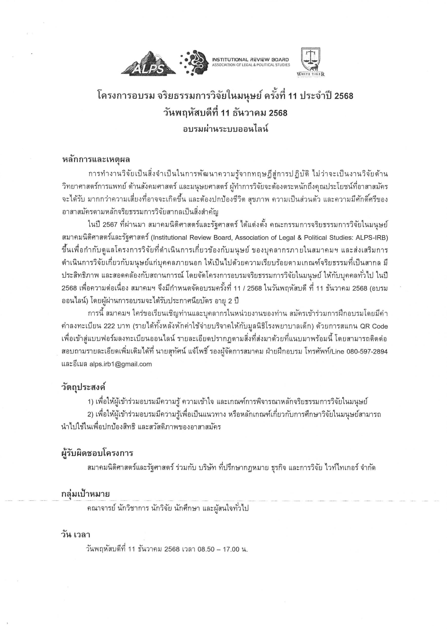 ประชาสัมพันธ์ โครงการอบรม จริยธรรมการวิจัยในมนุษย์ ครั้งที่ 11 ประจำปี 2568