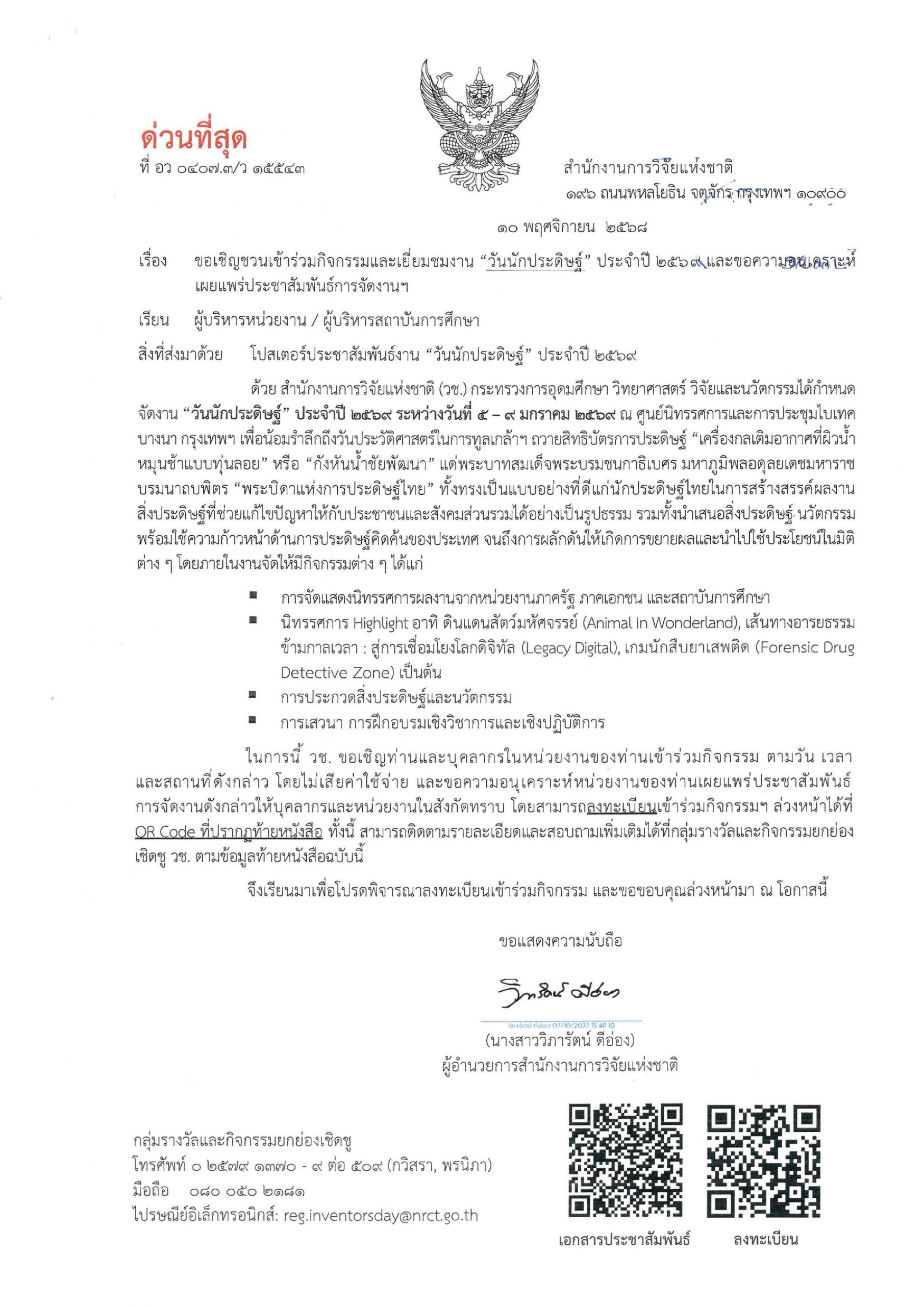 ประชาสัมพันธ์ ขอเชิญเข้าร่วมกิจกรรมและเยี่ยมชมงาน “วันนักประดิษฐ์” ประจำปี 2569