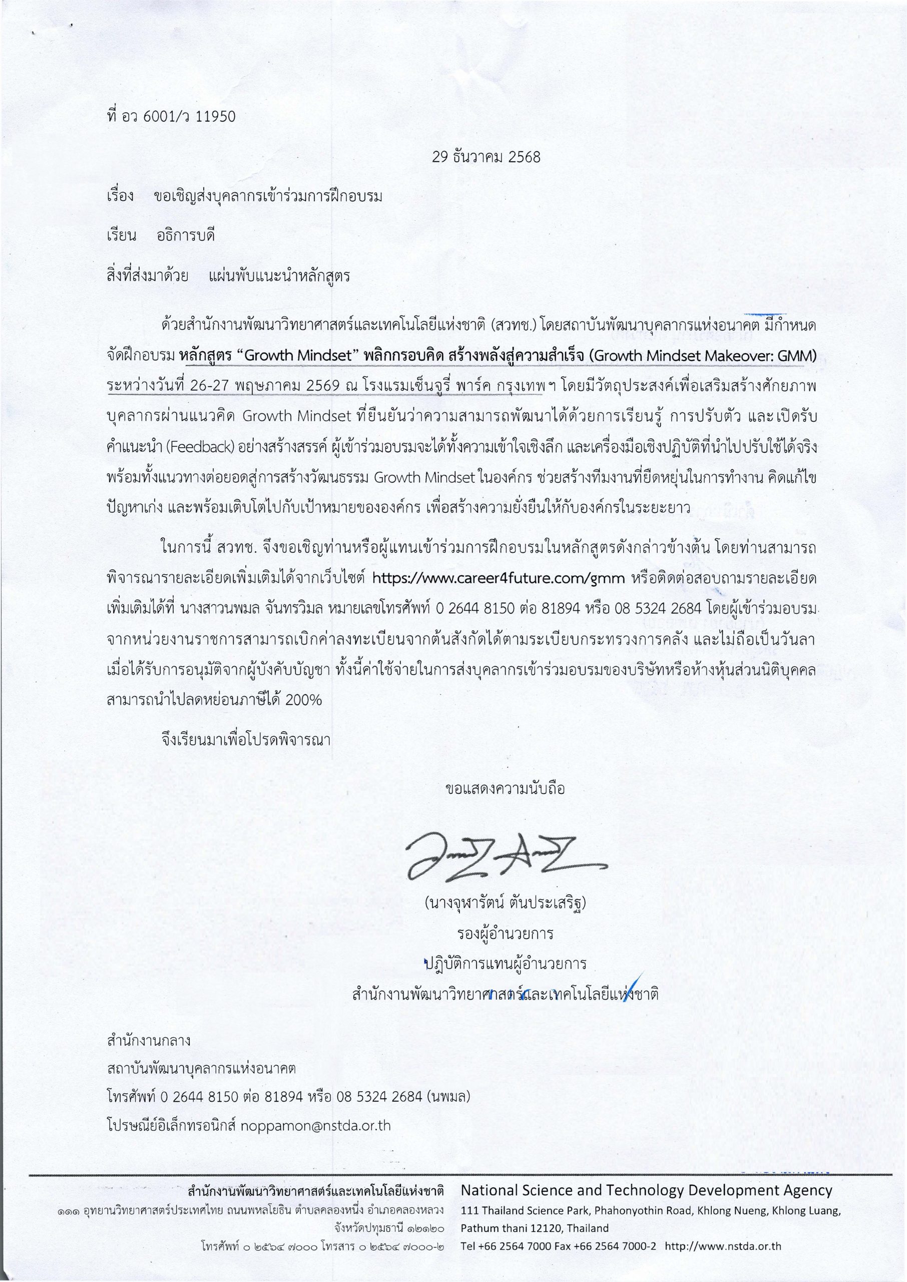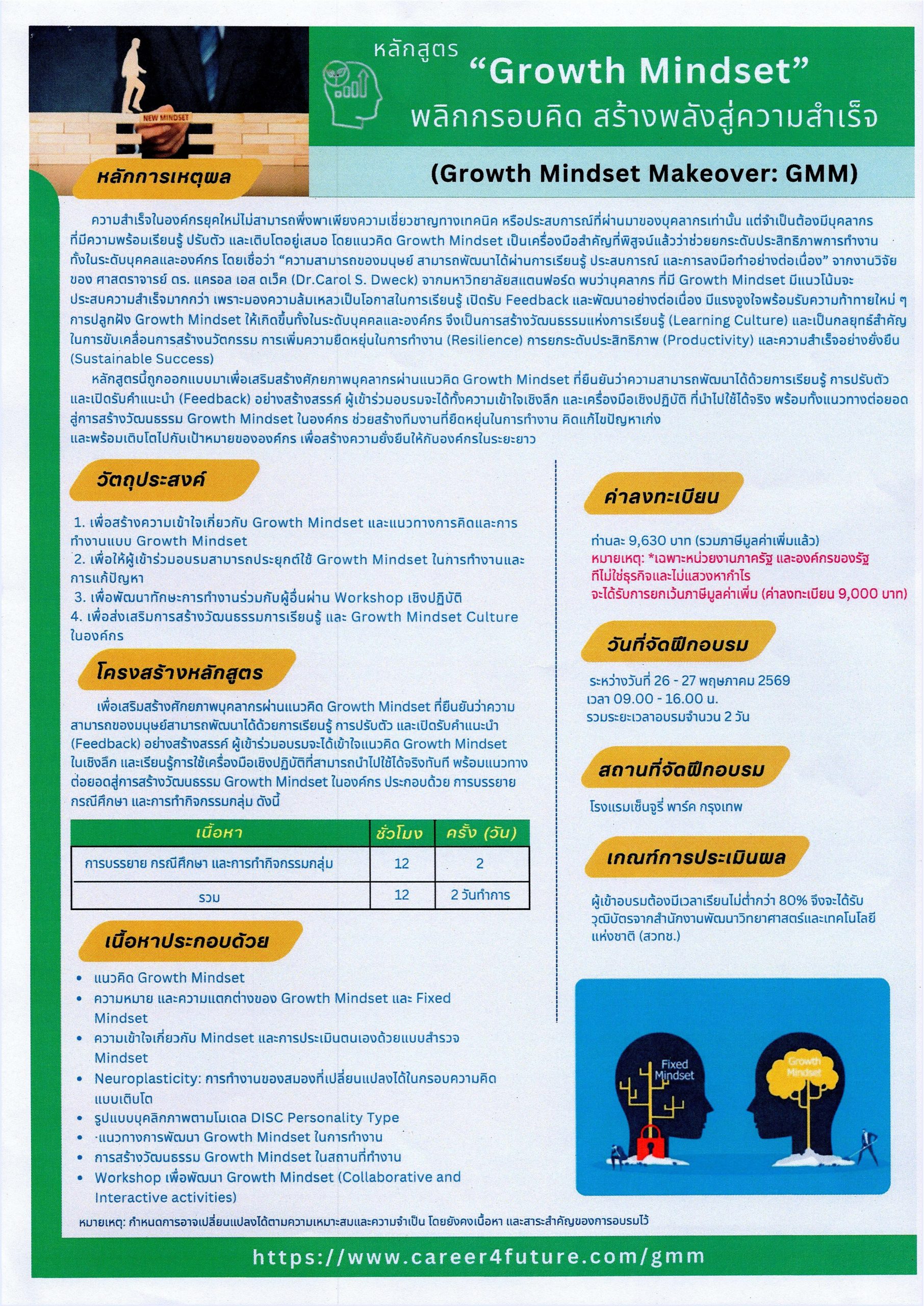 ประชาสัมพันธ์ เข้าร่วมการฝึกอบรม หลักสูตร “Growth Mindset” พลิกกรอบคิด สร้างพลังสู่ความสำเร็จ