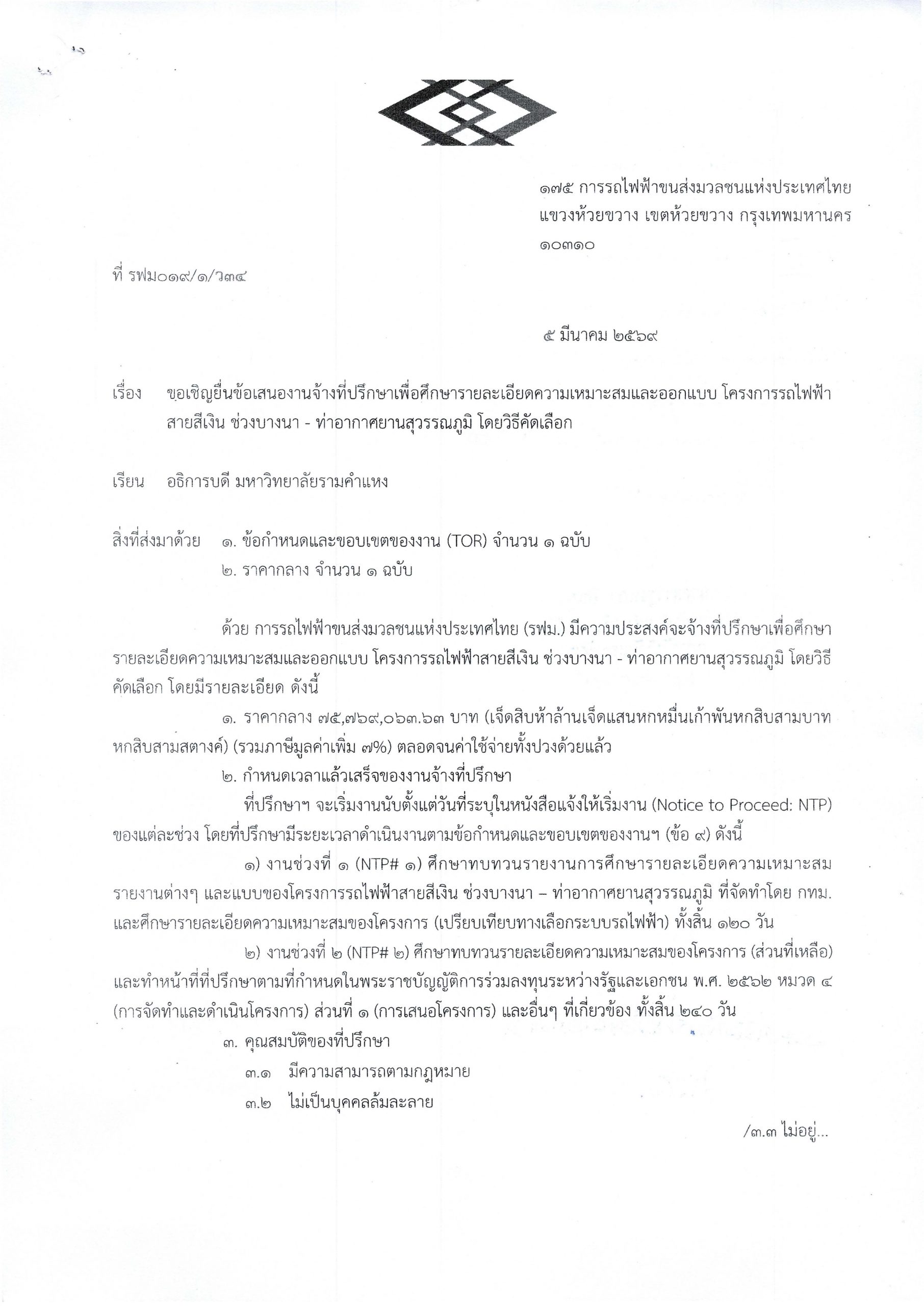 ปชส. ยื่นข้อเสนองานจ้างที่ปรึกษาเพื่อศึกษารายละเอียดฯ