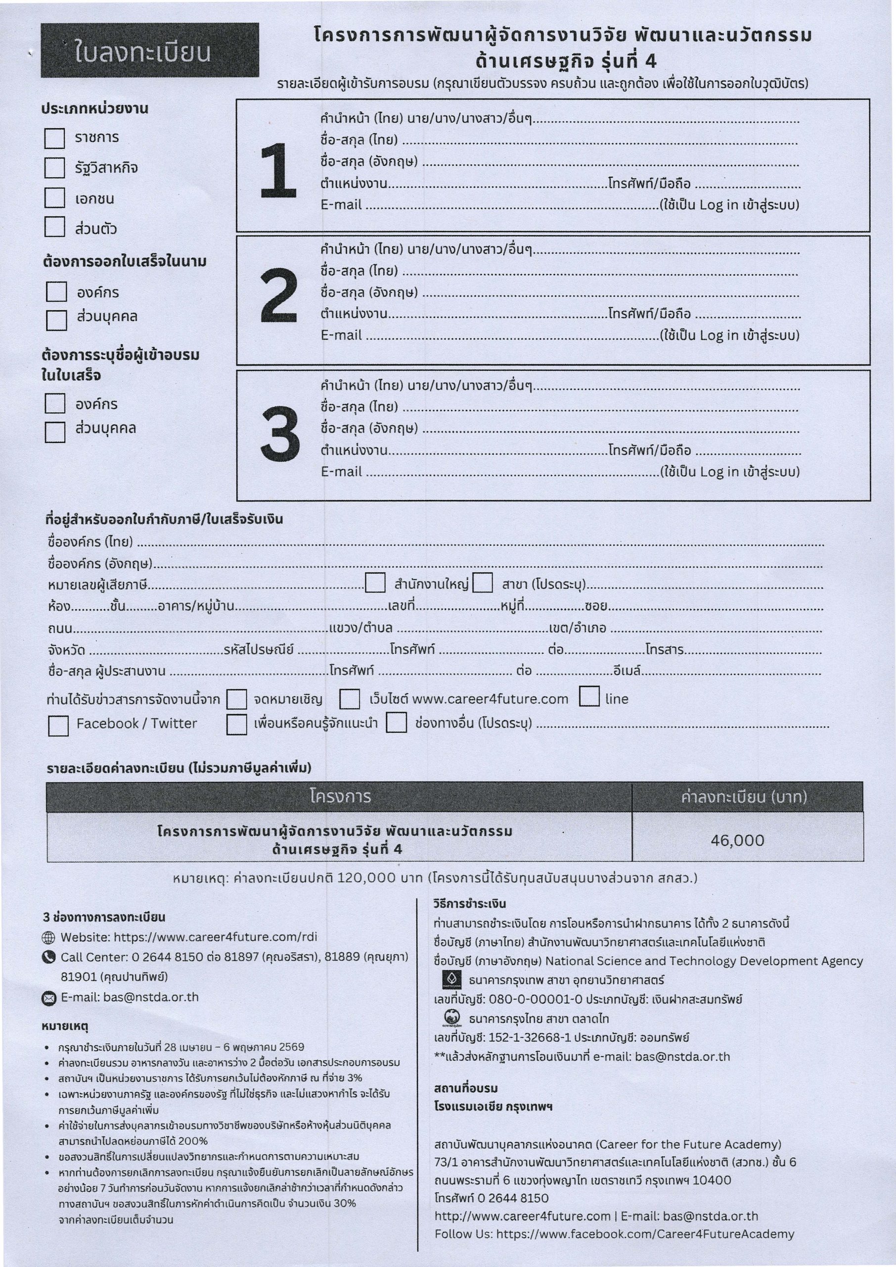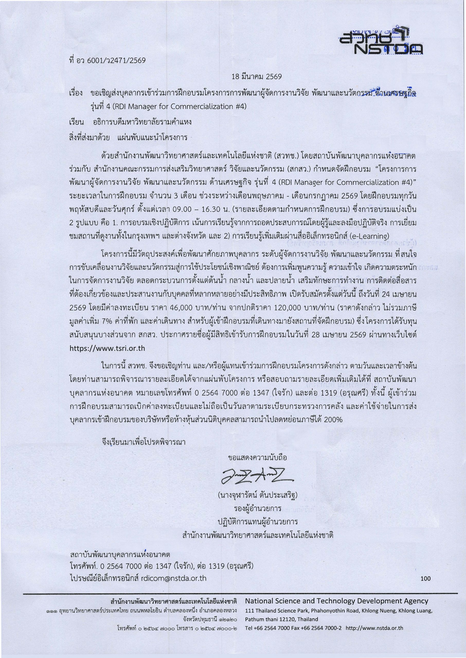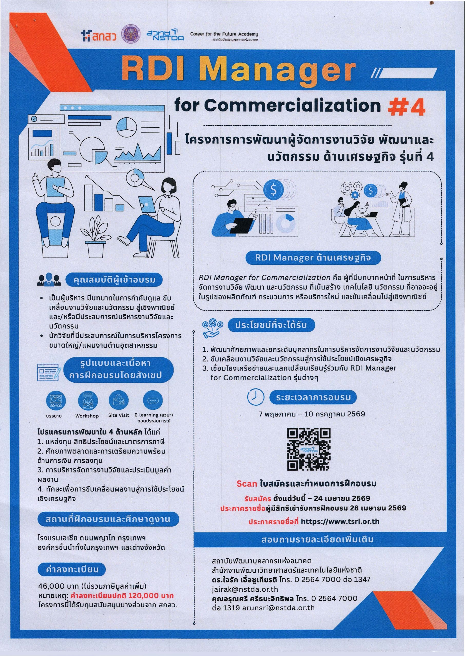 ปชส. ขอเชิญส่งบุคลากรเข้าร่วมการฝึกอบรมโครงการพัฒนาผู้จัดการงานวิจัย พัฒนาและนวัตกรรม ด้านเศรษฐกิจ รุ่นที่ 4 ดาวน์โหลด