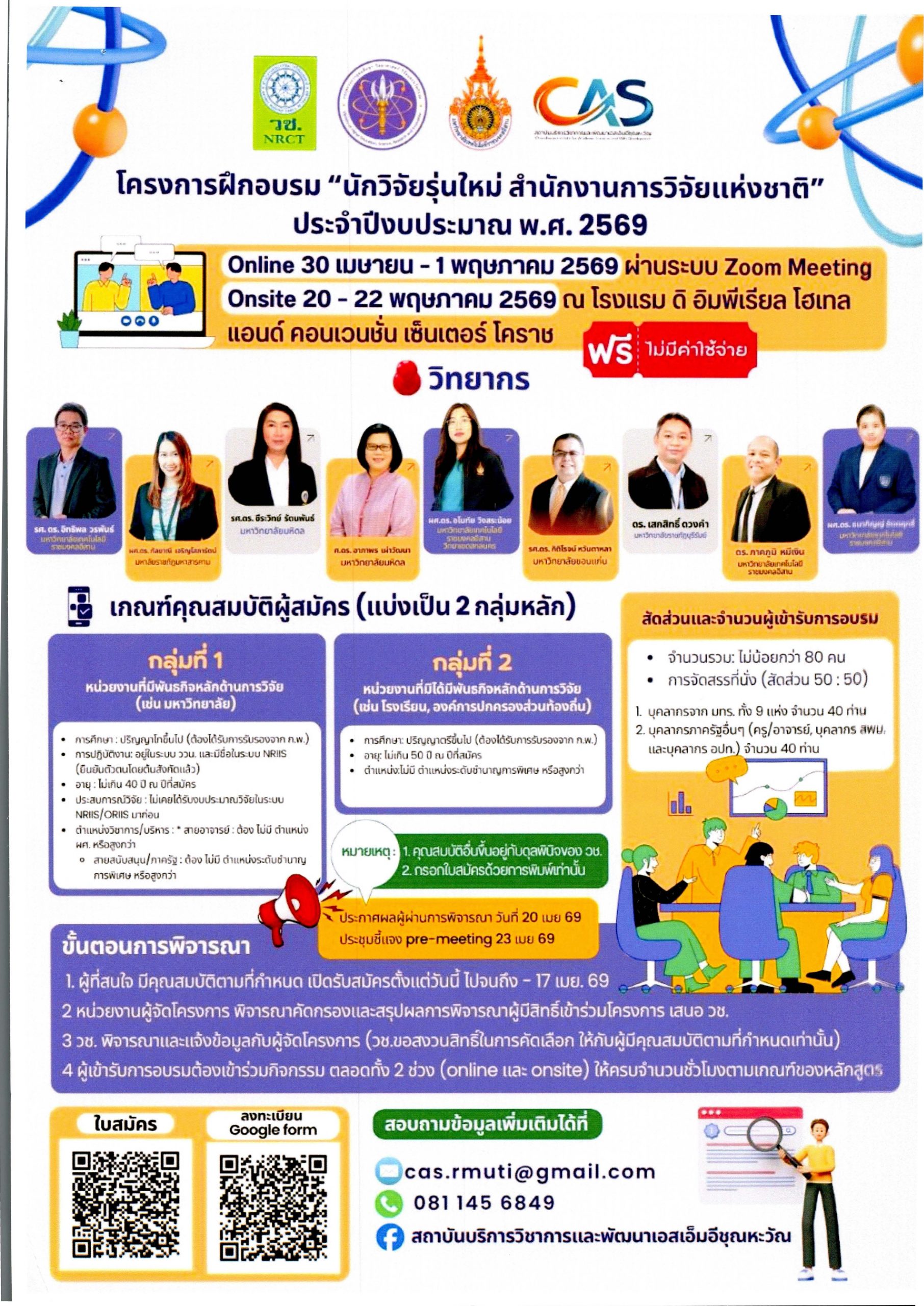 ประชาสัมพันธ์ และเชิญส่งบุคลากรเข้าร่วมโครงการฝึกอบรม “นักวจัยรุ่นใหม่สำนักงานการวิจัยแห่งชาติ” ประจำปีงบประมาณ พ.ศ. 2569